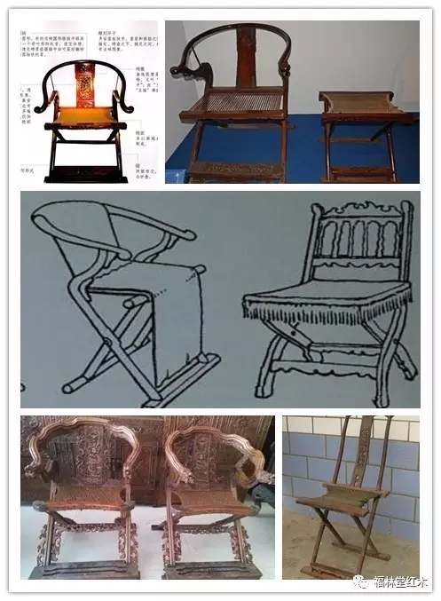 明式交椅承襲元代交椅的形制,有圓后背交椅與直后背交椅之分,用材以黃花梨為貴。由于清代居室中有許多種豪華、舒適的椅式,交椅有失風雅,遂逐漸減少了。清代宮廷中也有交椅,但僅作為鹵簿儀杖中的器物使用,制作精致,雕飾繁縟,華麗富貴,只是偶爾使用。(下圖就是各個時期交椅的圖片,可以觀賞一下)