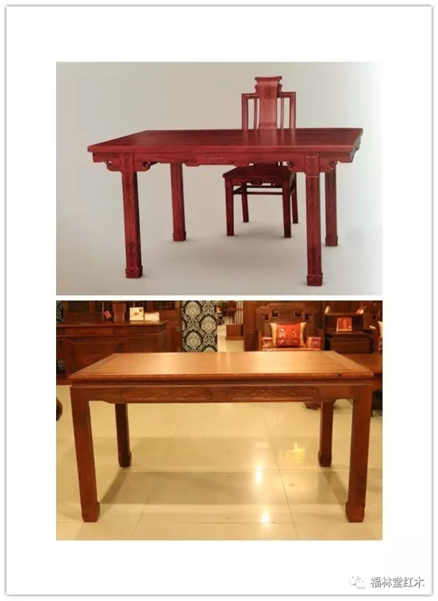一、在形制上的區(qū)別:桌是四足頂住桌面四角的;案是四足內(nèi)縮進來一部分的。下圖上半部分是案,下半部分是桌,可以仔細看看:
