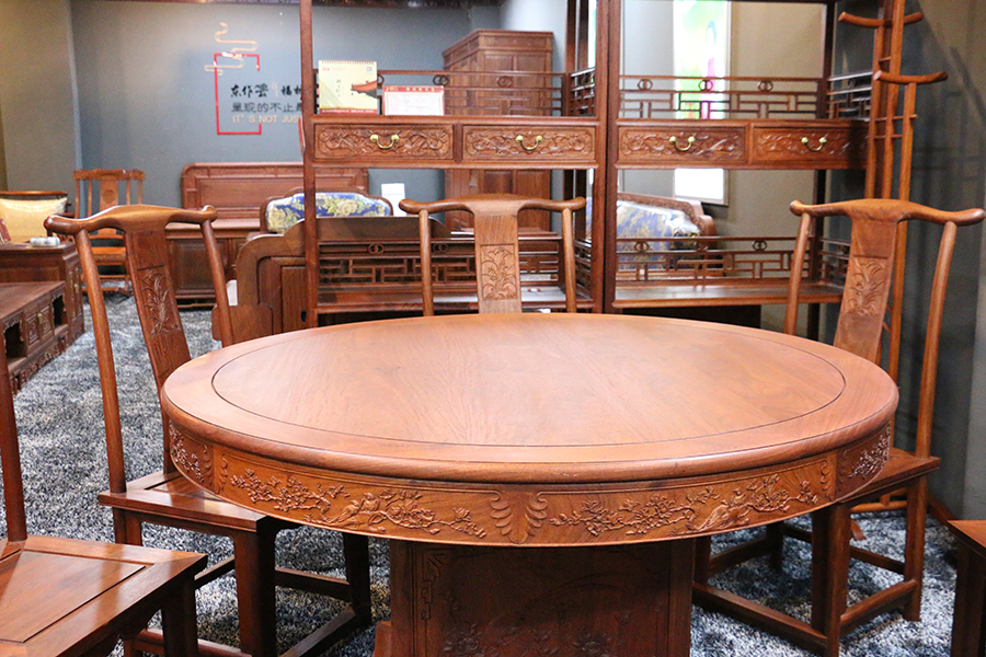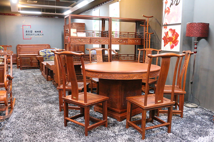 2、紅木家具的擺放要放平放正,不要四腿不在一個平面上。家具全體要與地面堅持垂直,否則極易引起家具全體和門子等部位變形,終究形成縫口開縫,縮短家具的使用壽命。
